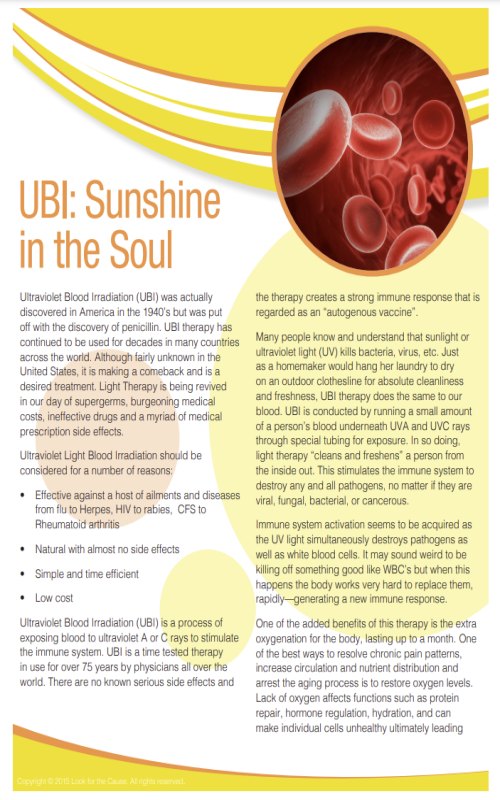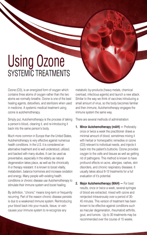 IV ozone can be greatly enhanced by combining this therapy with Ultraviolet Blood Irradiation (UBI).